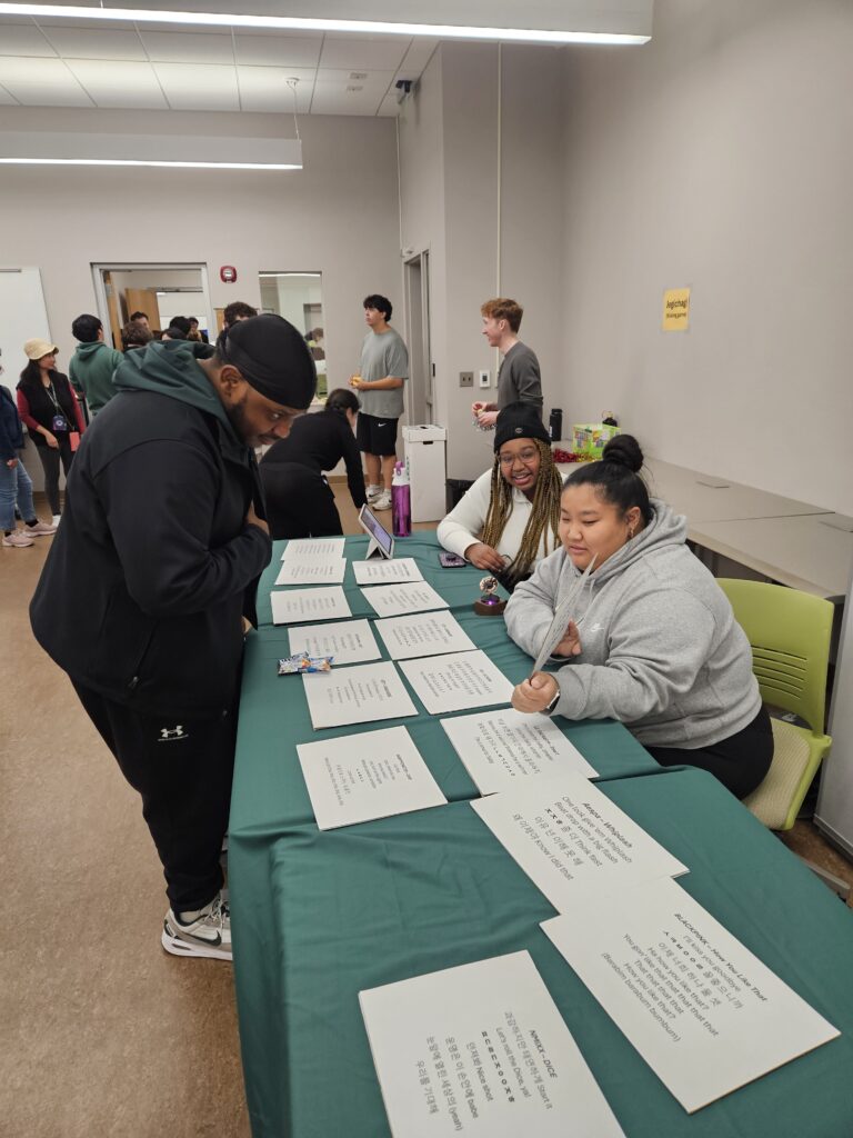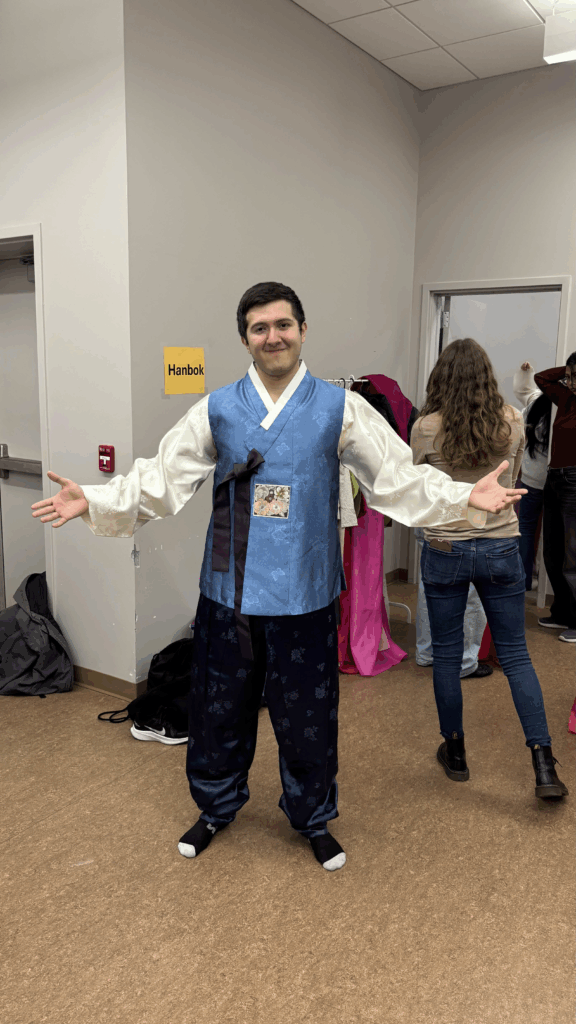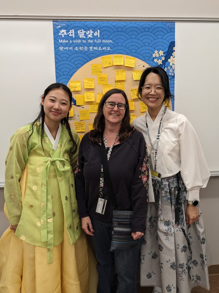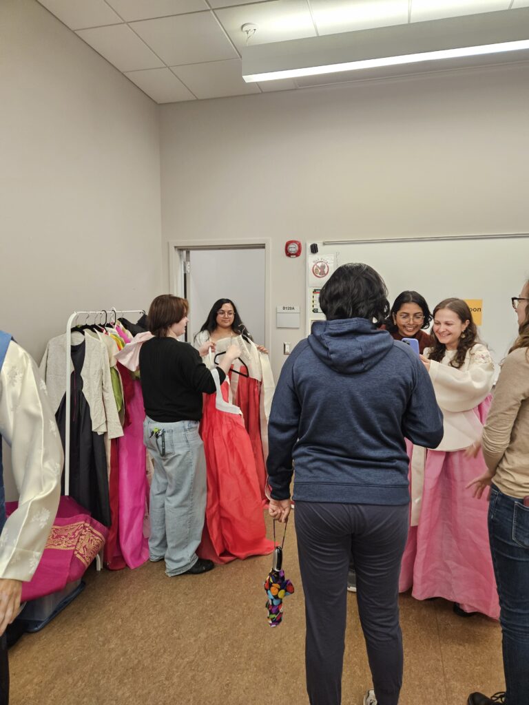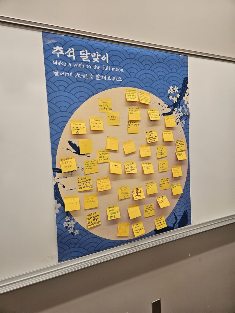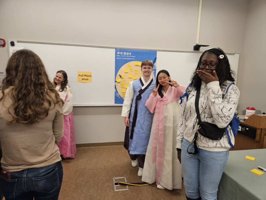 On October 23rd, the Korean program held a very well-attended Chuseok Celebration in B125. B127, and B129. These awesome public events were held to celebrate Korean Thanksgiving, Chuseok. The event was open to everyone, and so many invitees arrived that line for food went through two of the three rooms. All who joined had the chance to enjoy a wide variety of delicious Korean food and experience Korean culture together.