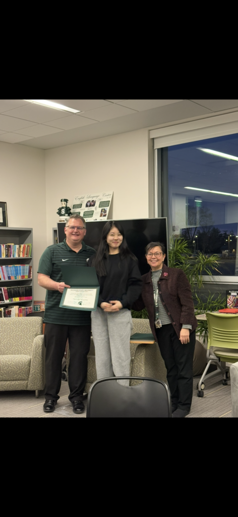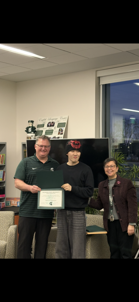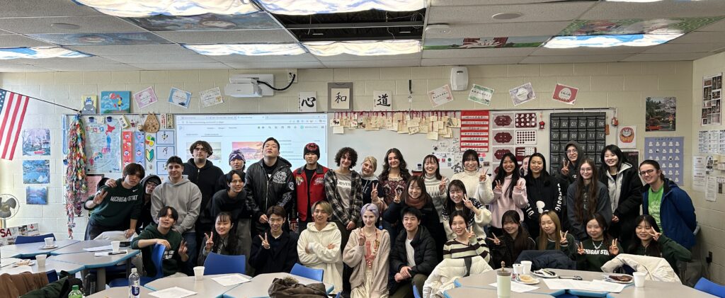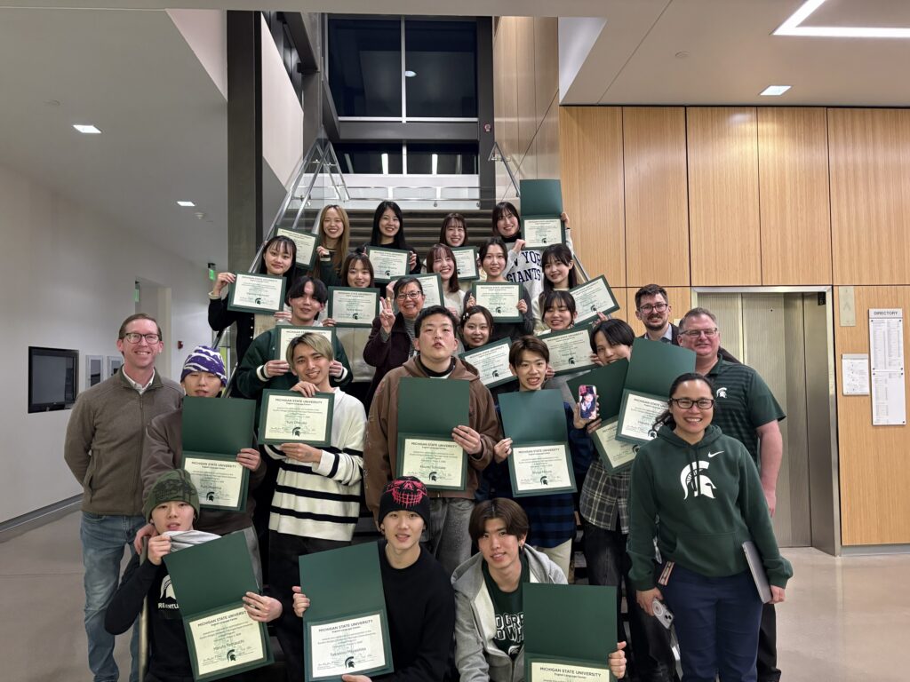 The MSU English Language Center held a farewell dinner for our wonderful students from Nagoya City University and Kyushu Sangyo University on March 3rd. They completed their 1-month program with us where they took part in ELC Intensive English Program classes, visited the Michigan Capitol, Chicago, and Detroit, and had numerous opportunities to get to know MSU students through Japanese language exchanges, a Japanese language class project and various other activities at MSU.